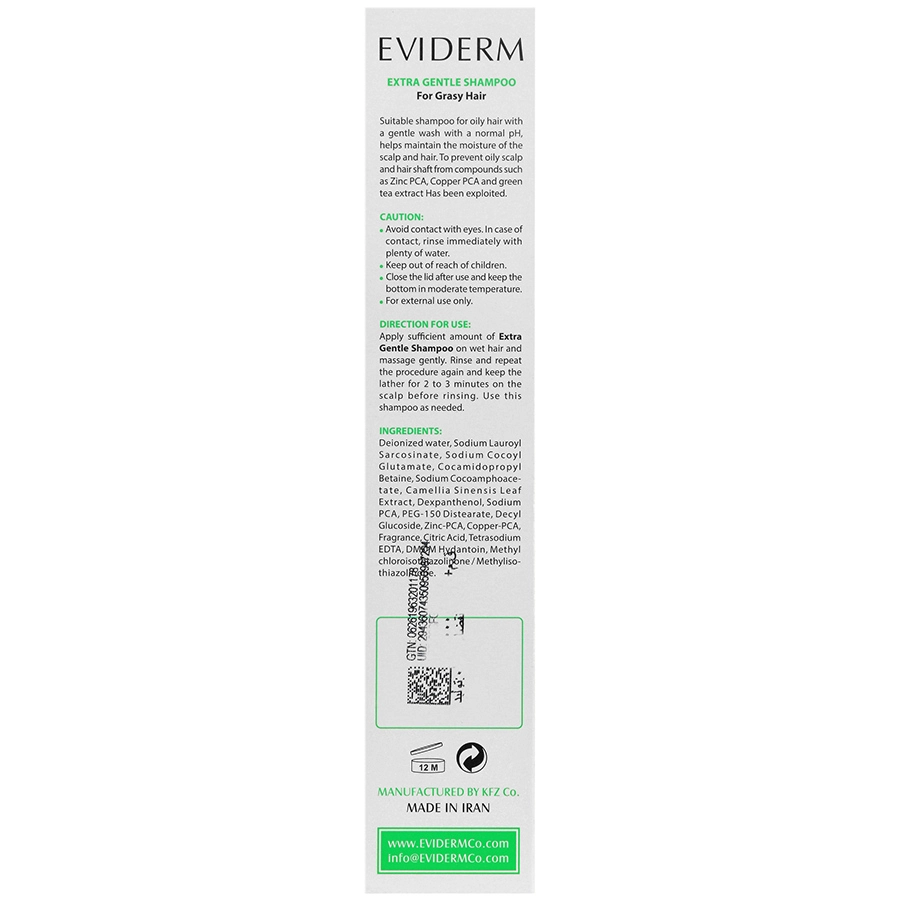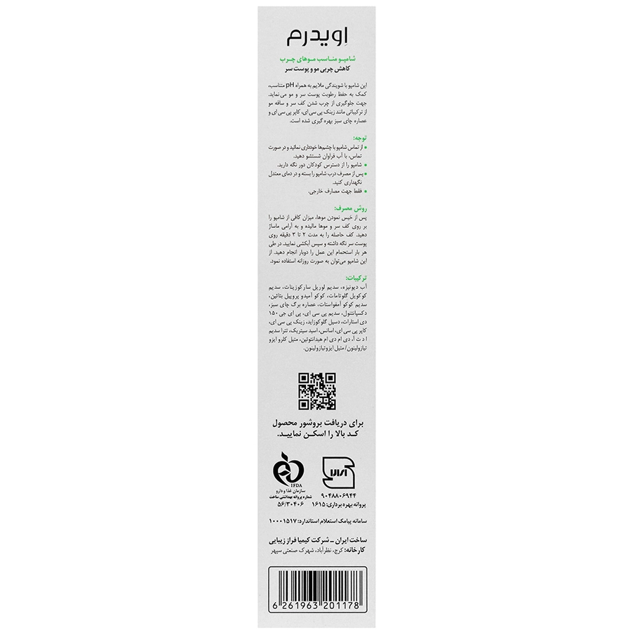 - شامپو اویدرم بدون سولفات موها چرب دارای عصاره چای سبز